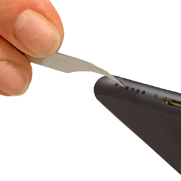 Ideal zum Lösen von Schmutz in der Ladebuchse. Die Spitze dieses Werkzeugs erreicht auch filigrane und tiefliegende Stellen deiner Geräte und kann hier Schmutz auflockern.